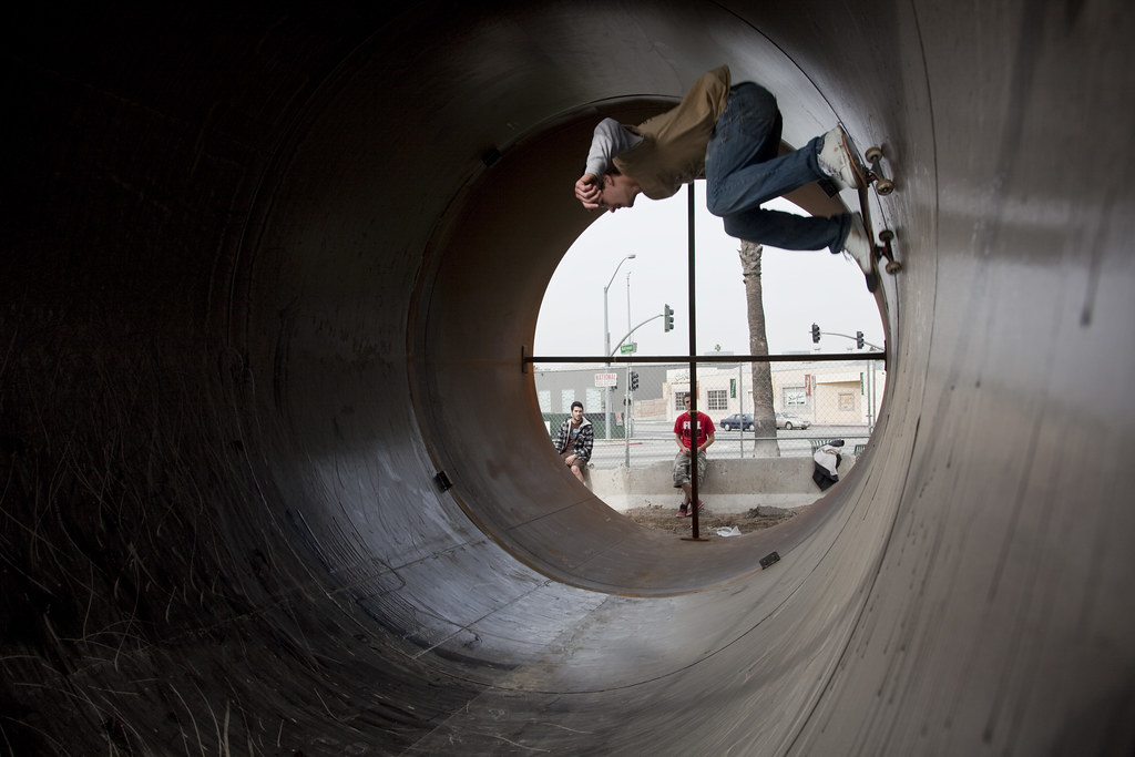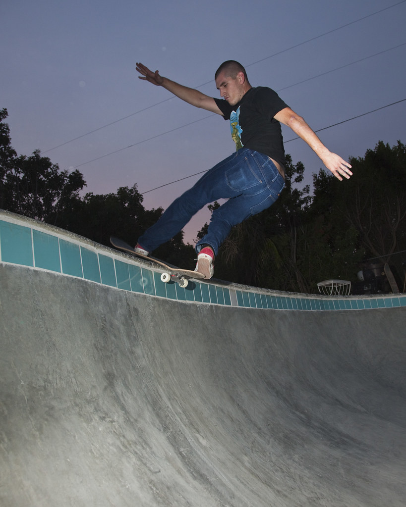More photos from the fullpipe session can be found here. Louis slammed hard and security was lurking, so we made our escape. We headed up the coast to Malibu, making a detour to ride some downhill on our way to a private, built-to-skate backyard pool.