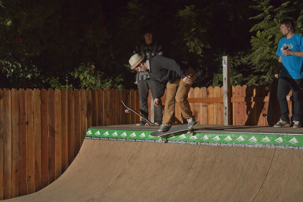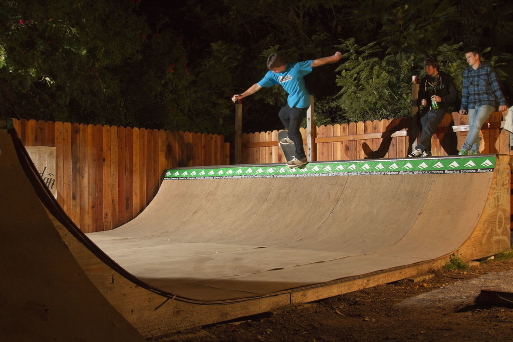 Wherein your favorite skateboarders have some beers and rudely yell “Free bird!” at the live band. The evening was kicked off by a session at this somewhat-janky mini ramp in Isla Vista. Kody has pop.