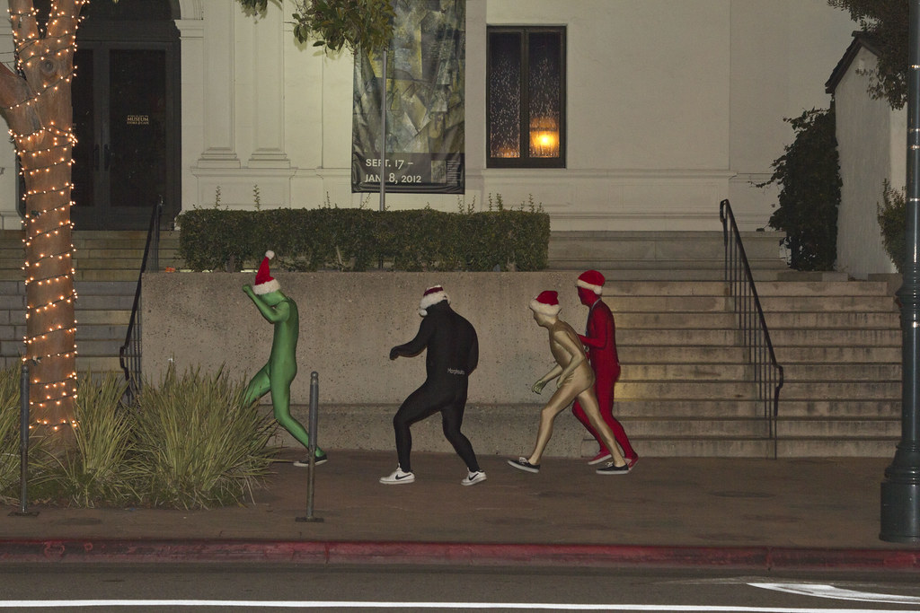 Aging hipster Santa Claus made an appearance with aging hipster Mrs. Claus. Nice cravat, dude.