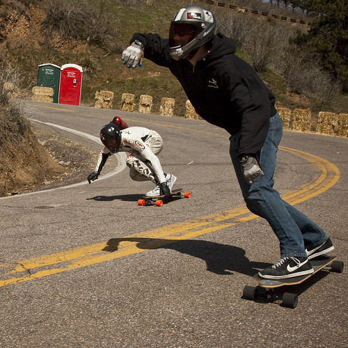 Brian Peck stands up and takes an outside line to let Kevin “K-Rimes” Reimer and Zak Maytum pass while freeriding at the Buffalo Bill Downhill Bloodspill. Matt K photo.
