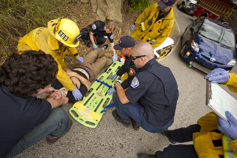 James Kelly is loaded into an ambulance after hitting a car in 2011.