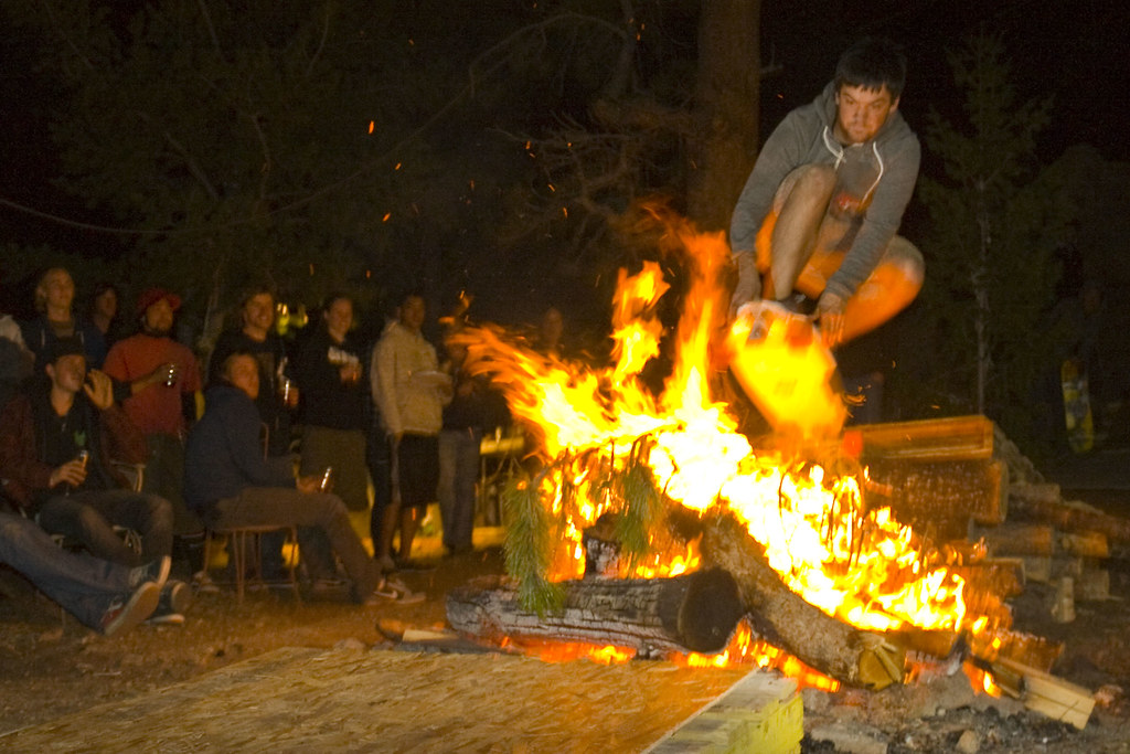 Above: If you’re wearing shorts and don’t have much pop, you might want to think twice about early-grabbing the giant bonfire. If at first you don’t succeed, throwing yourself into the flames two more times might not be the best idea.