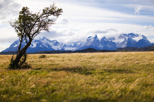 “There is something beautiful about a lonely tree. A gnarly wind blown tree that has spent its life getting thrashed around. If you look at the tree you can see it is leaned to the right from the constant wind toppling it over. The lighting was not ideal for this pic, the sun was a bit too high but we had to keep moving. I shot this with f 1.2. I focused the camera right on the little light spot on the tree. My composition was to lead the eye to the tree over the meadow of waving grass in which we napped in.”