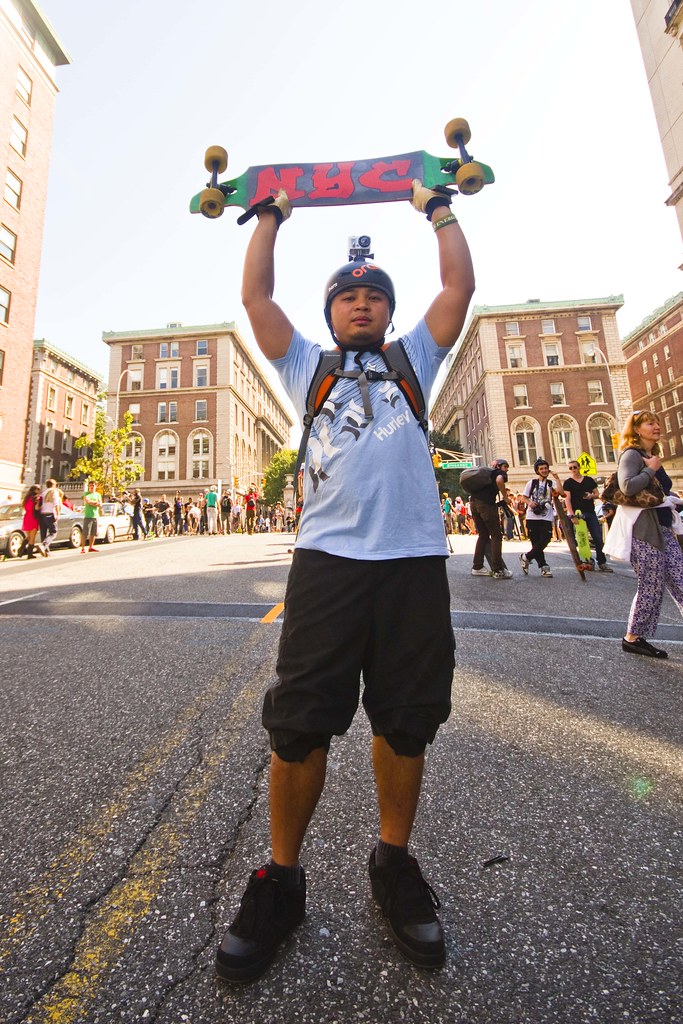 Broadway Bomb is basically the sickest push race there is. The 8-mile course runs along Broadway from the gates of Columbia University at 116th street all the way down to the bull statue on Wall Street. The road is not closed and there’s lots of automobile and pedestrian traffic. For the most part, it’s flat or slightly downhill.
