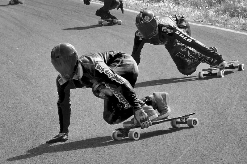 Team Skatehouse gettin’ in it on the first righty. Big Lou doesthe light dude grippy wheels carve ‘n’ grip while James and Matt get their toeside predrifit on.