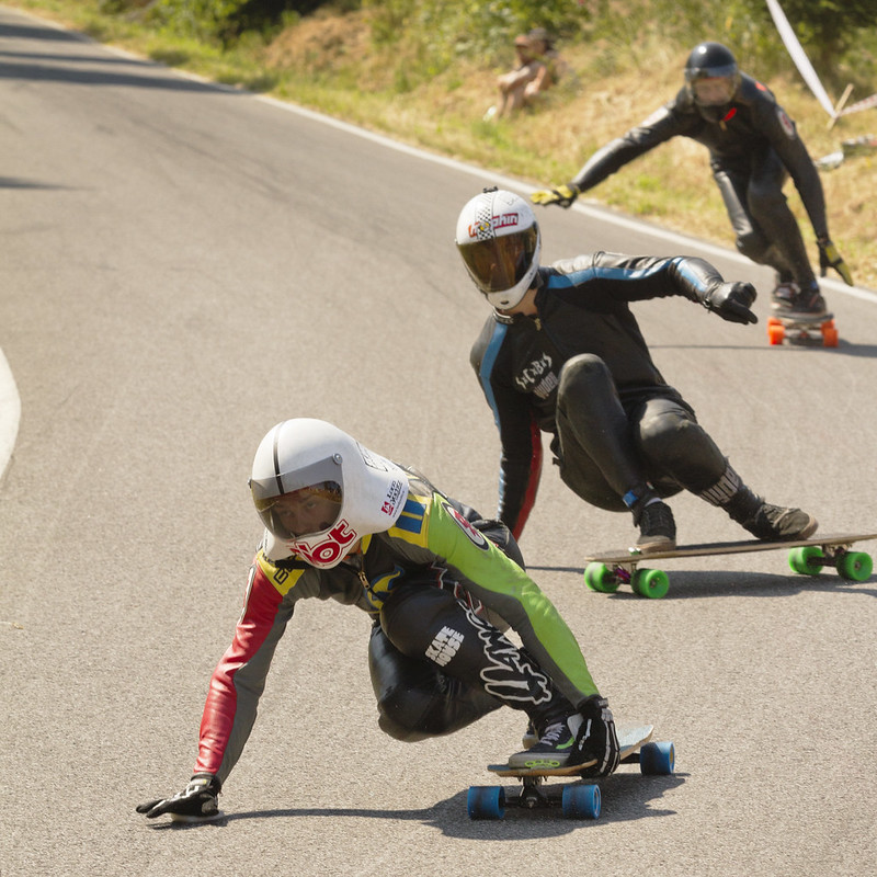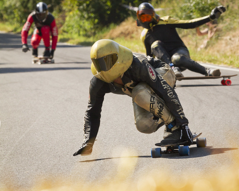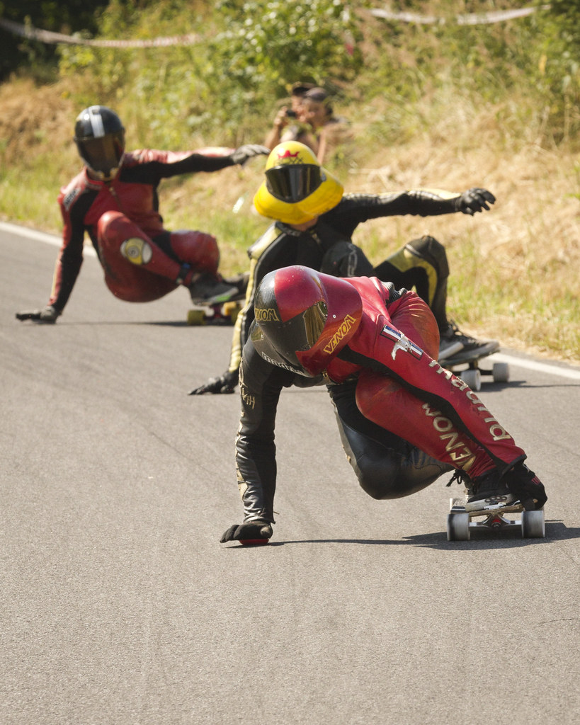 RAD’s Adam Persson got 2nd. Dude’s mad good, super nice, and may well have the best hair in downhill skateboarding. That’s Micah Green out back and someone I don’t know in yellow.